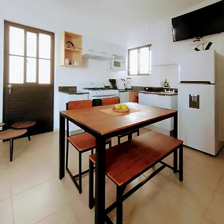 Casa En Privada Con Alberca, Excelente Para Vacaciones Y Descanso Villa includes a dining area with coffee and tea making equipment, a refrigerator, and glassware.